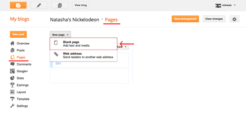 The first step is to go to "Pages" in blogger. Once there, click the "New Page" button and select "Blank page".